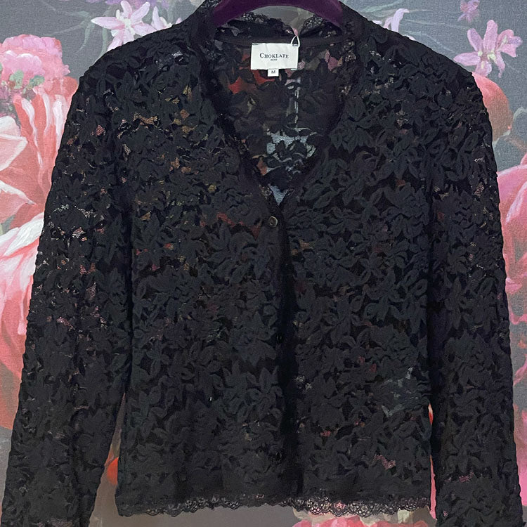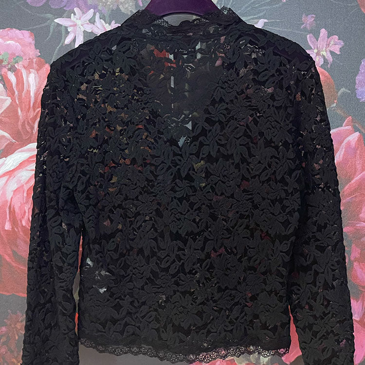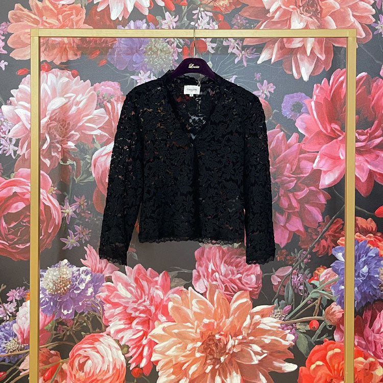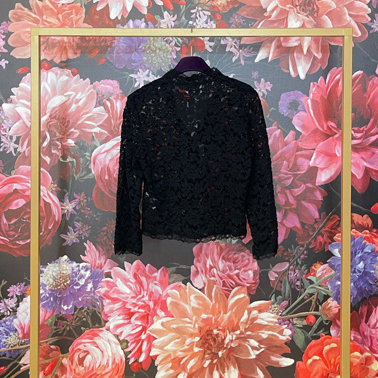 Lass dich von unserem Spitzen-Top mit V-Ausschnitt und aus modischer schwarzer Spitze gefertigt, verzaubern! Leicht zuknöpfbar und absolut im Trend.