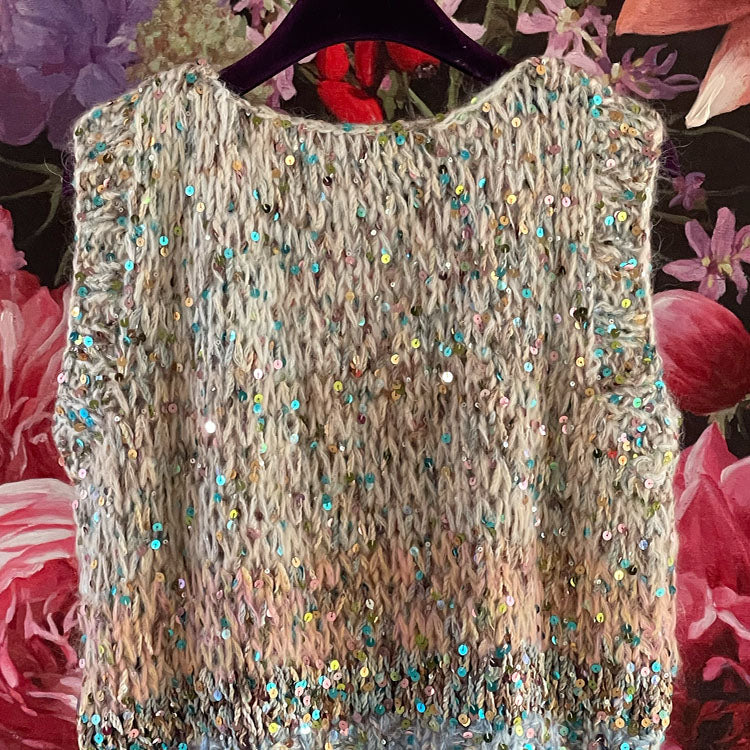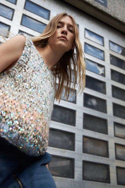 Der Pullunder mit Pailletten und V-Ausschnitt verleiht dir einen verspielten Touch. Perfekt für jeden Anlass und eine wahrer Eyecatcher.