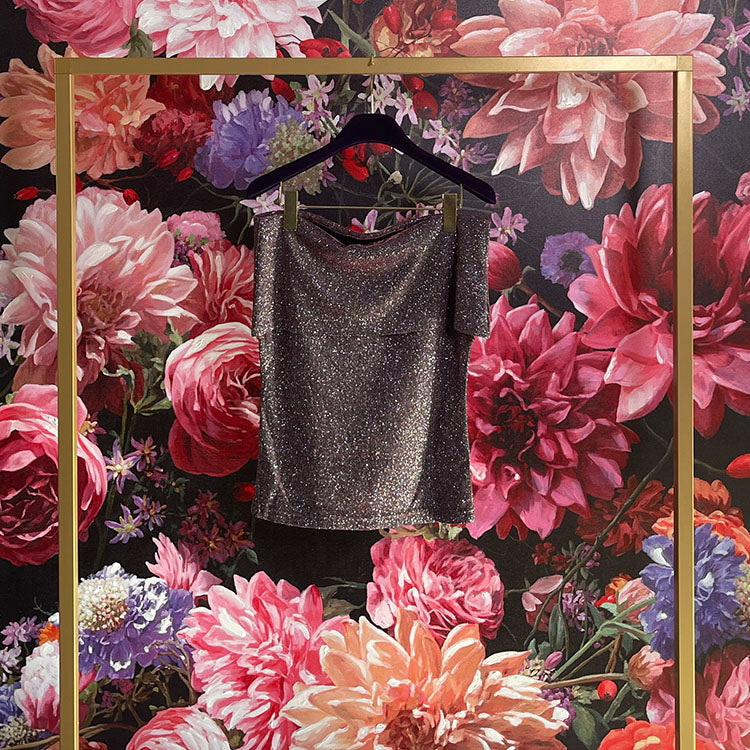 Das Top lässt sich mühelos mit jeder Hose oder jedem Rock kombinieren – oder zusammen mit den Maxi-Hosen zu einem funkelnden Outfit stylen.