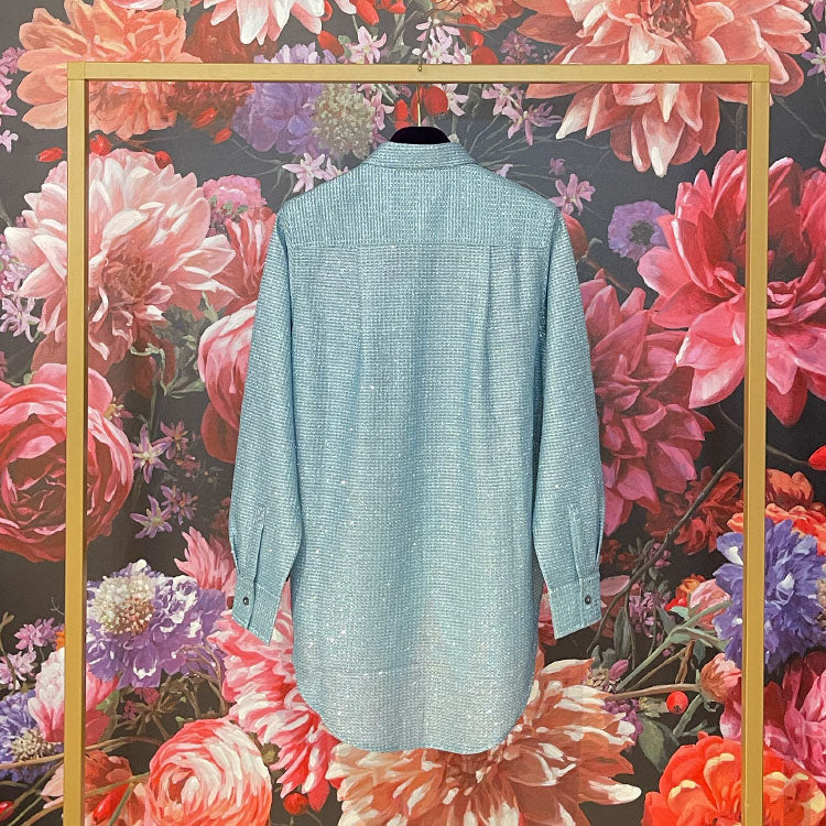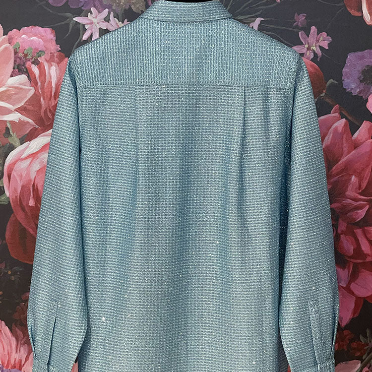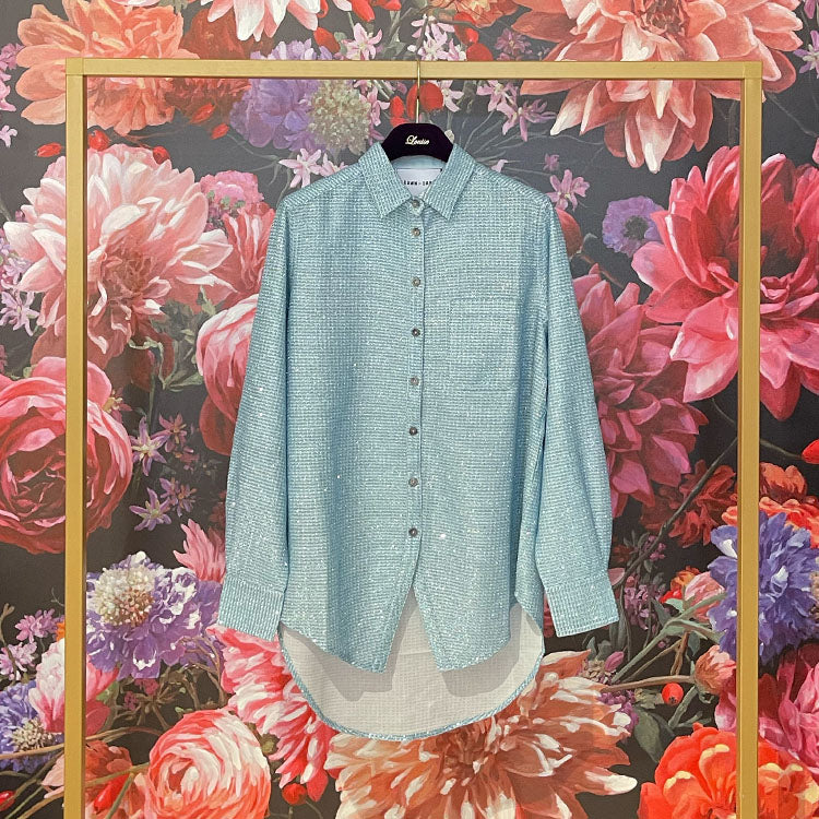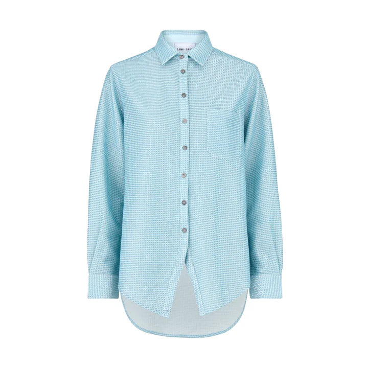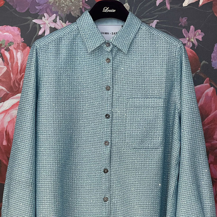 Die Dawn x Dare Bluse bietet Ihnen das Beste aus beiden Welten - lässig und schick. Das glitzernde und strukturierte Material gibt Ihnen den perfekten Hauch von Eleganz, während das kühle Blau Ihnen einen coolen Look verleiht. Genießen Sie die hochwertige Qualität dieser Bluse für alle Gelegenheiten.