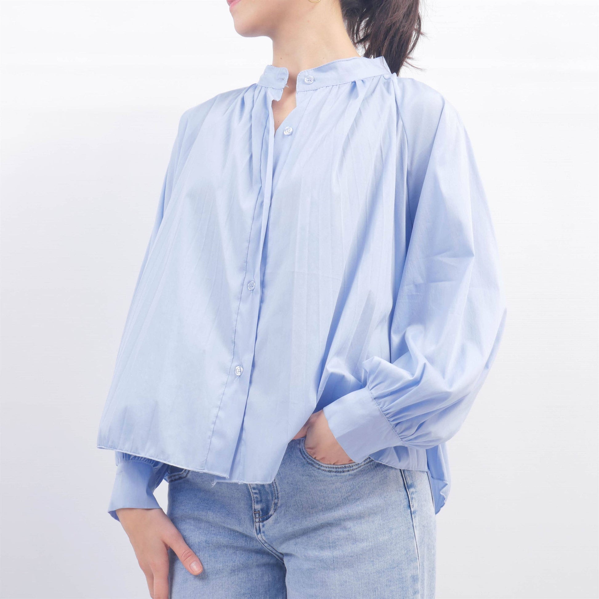 Mao-Kragen-Hemd mit leicht plissiertem Stoff