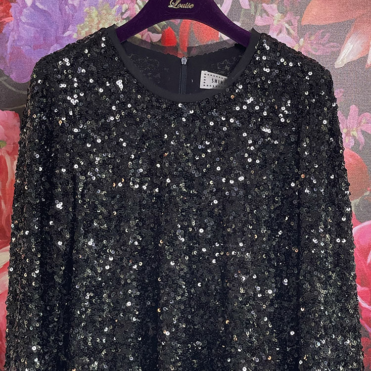 Dieses Shirtaporter Shirt vereint Pailletten mit modischem Schnitt und einem lässigen Look. Es ist ein auffälliges Kleidungsstück, das bequem und cool zugleich ist. Ein perfekter Begleiter für jede Party!