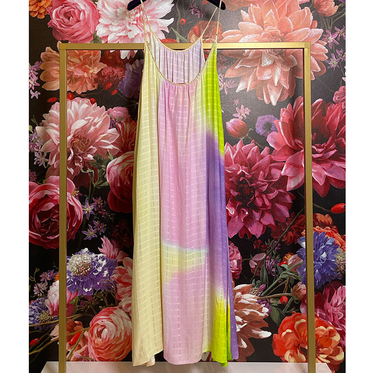 Zartes Trägerkleid in Batik-Optik, weit fallend in Midi-Länge.